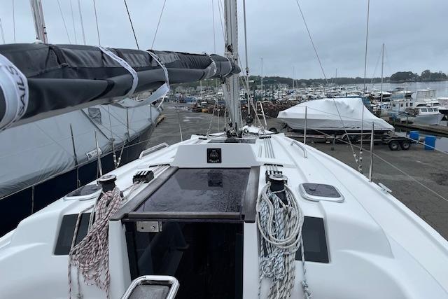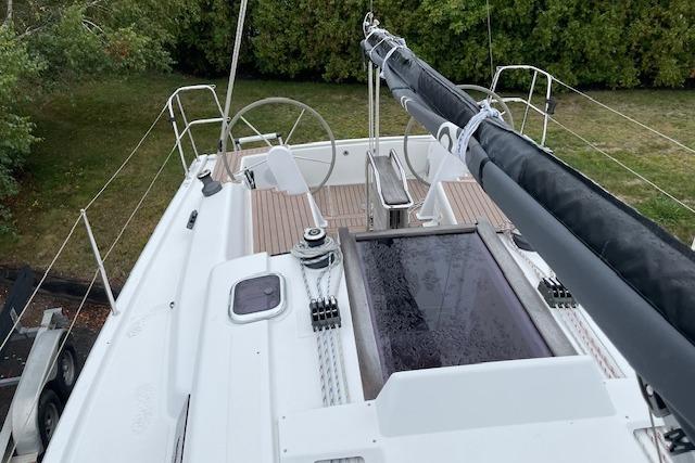 Hanse easy sail main sheet and jib sheet lead aft the helm winches'
