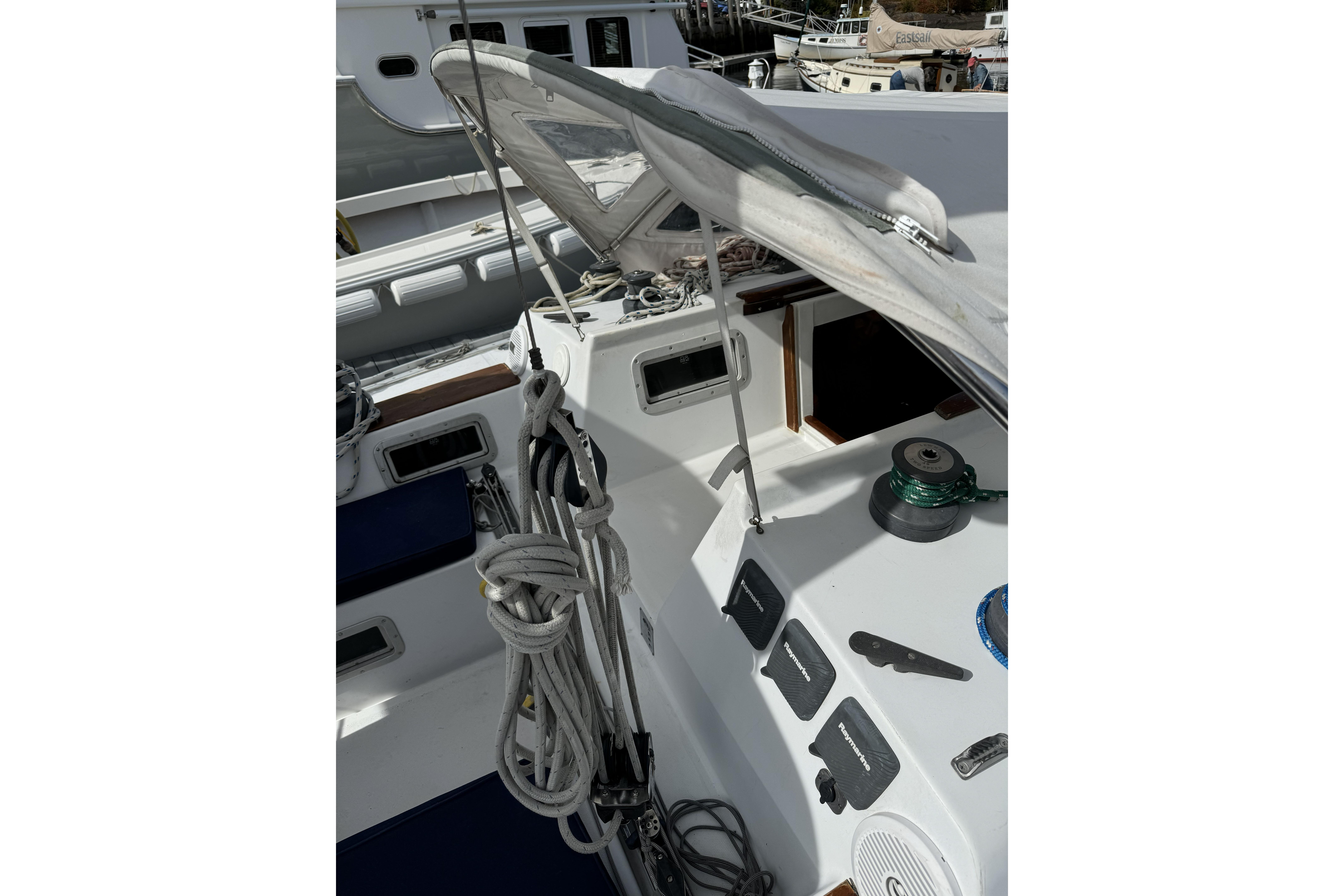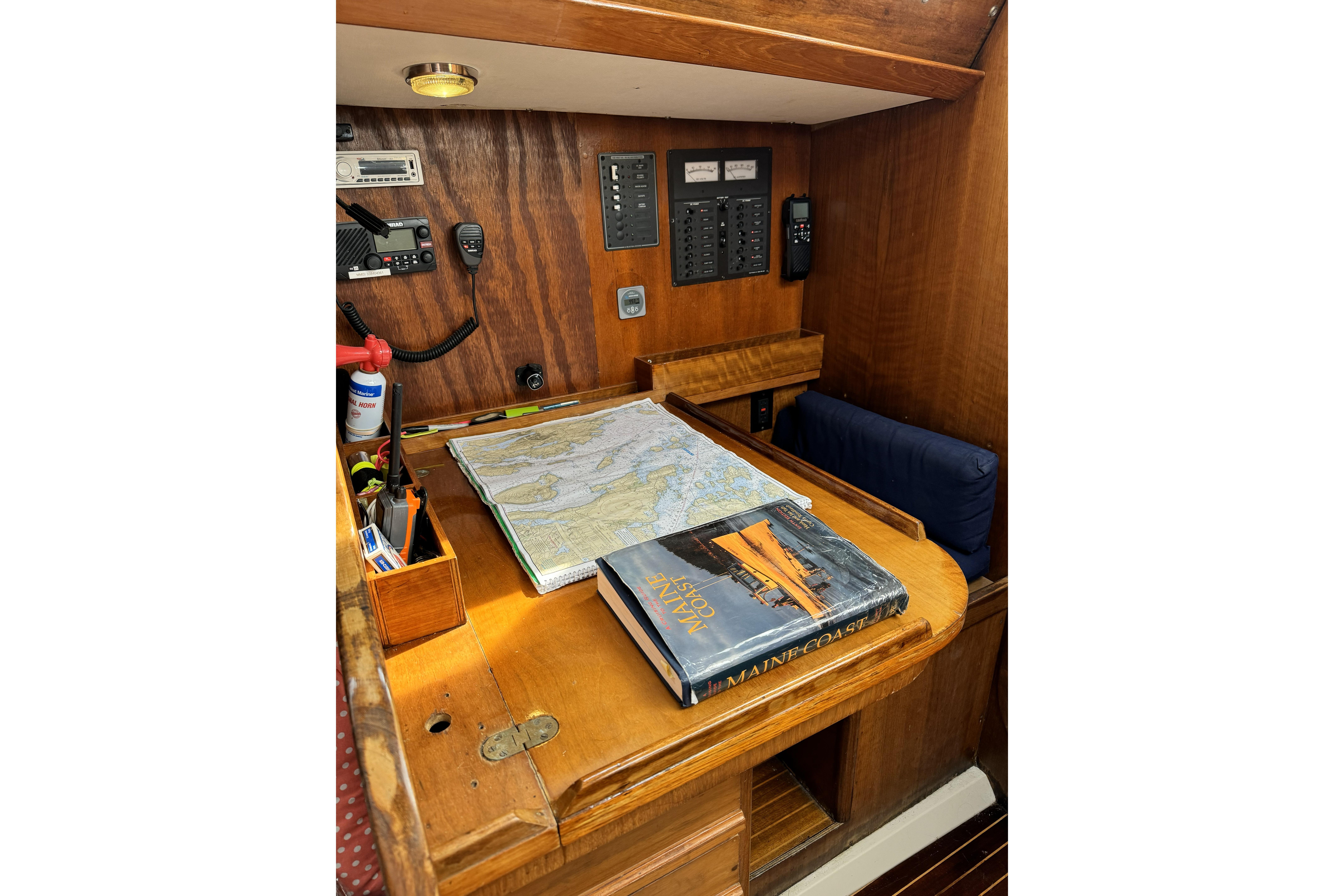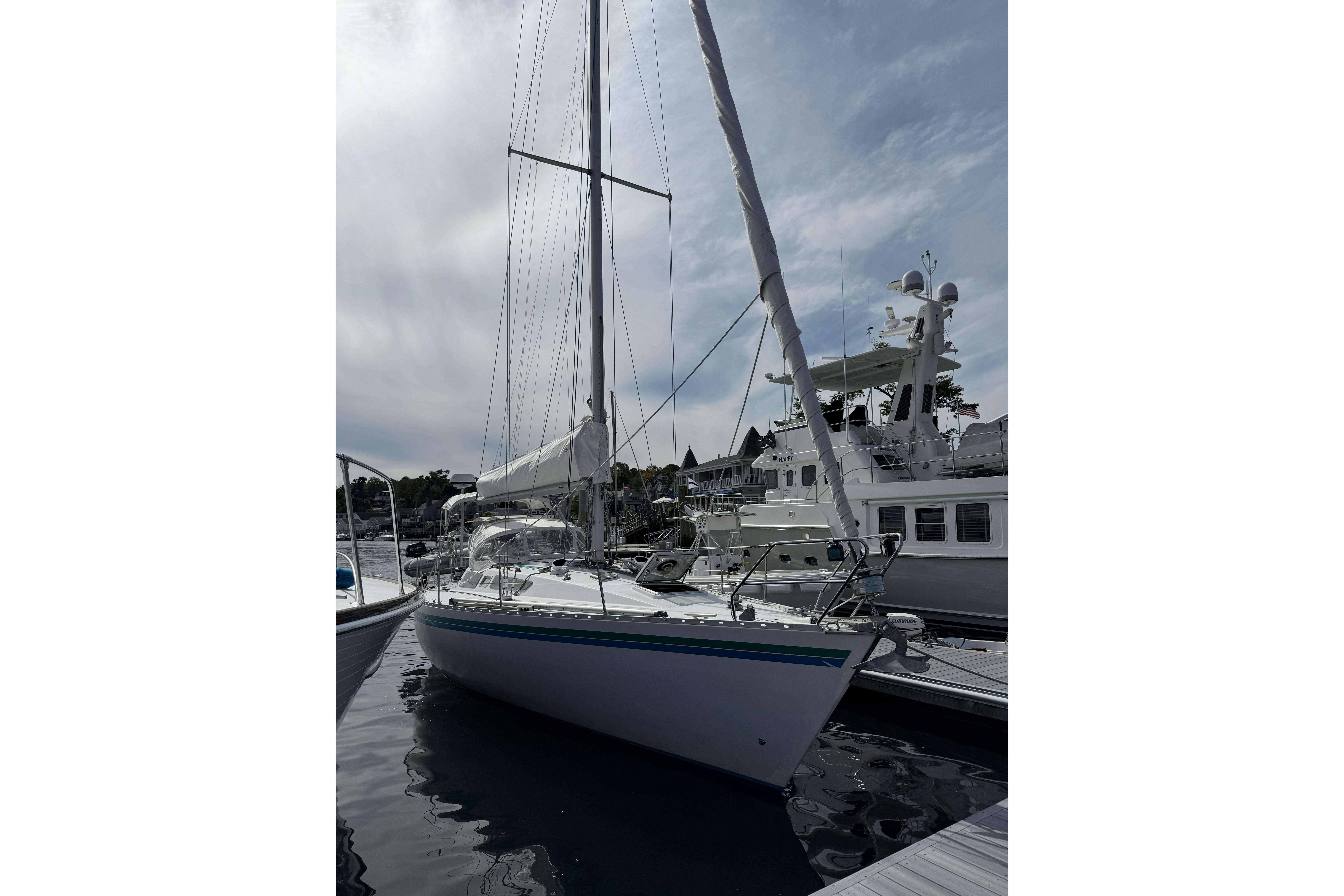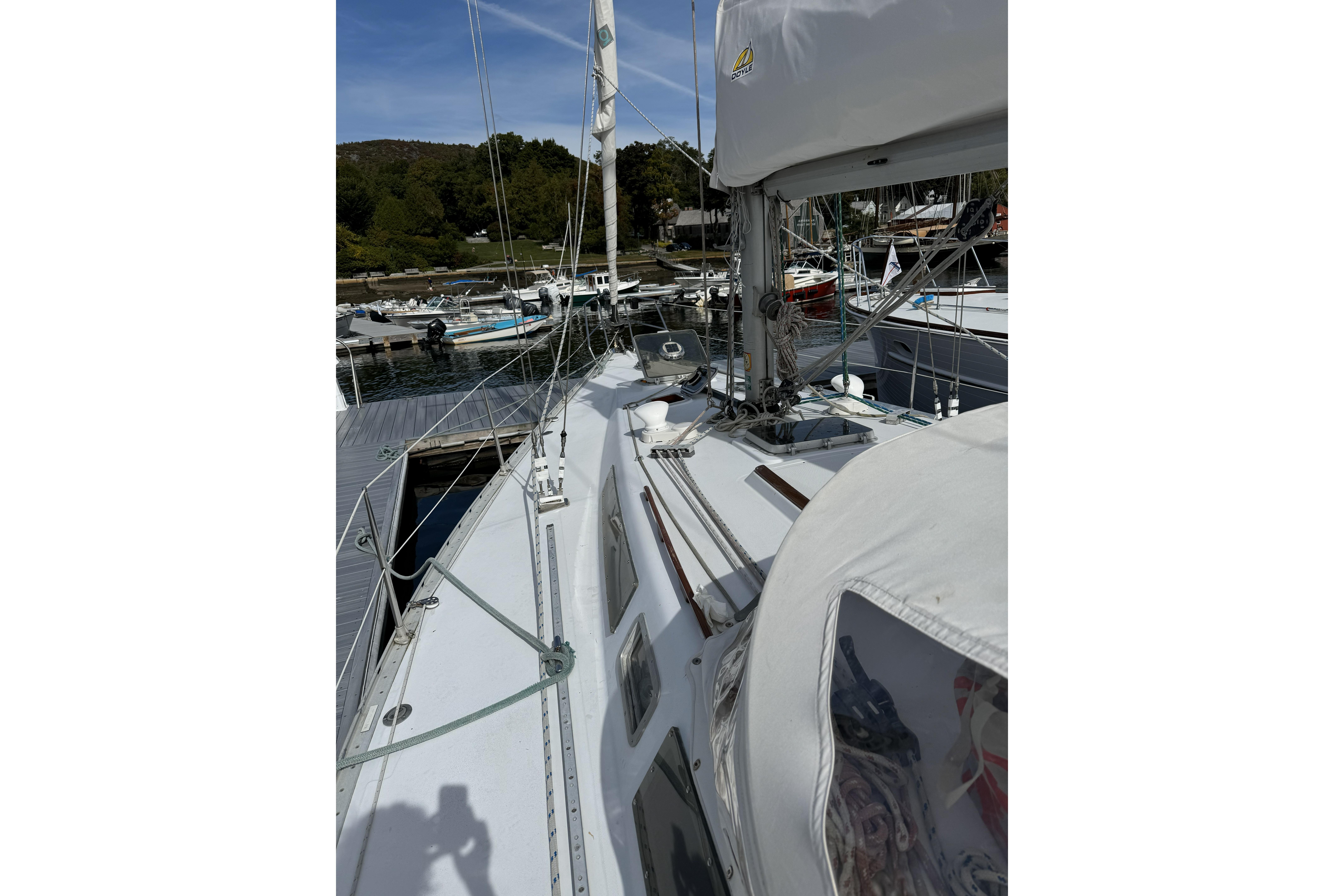 1984 Barberis 38 new to the market. Fabulous looking Italian manufactured yacht. Beautifully varnished warm rich mahogany interior with queen size v-berth featuring generous storage. Enclosed head and shower. Spacious salon with lush blue upholstery settees on port and starboard with aft L-shaped galley and navigation station. Queen size aft cabins on port and starboard sides with storage.