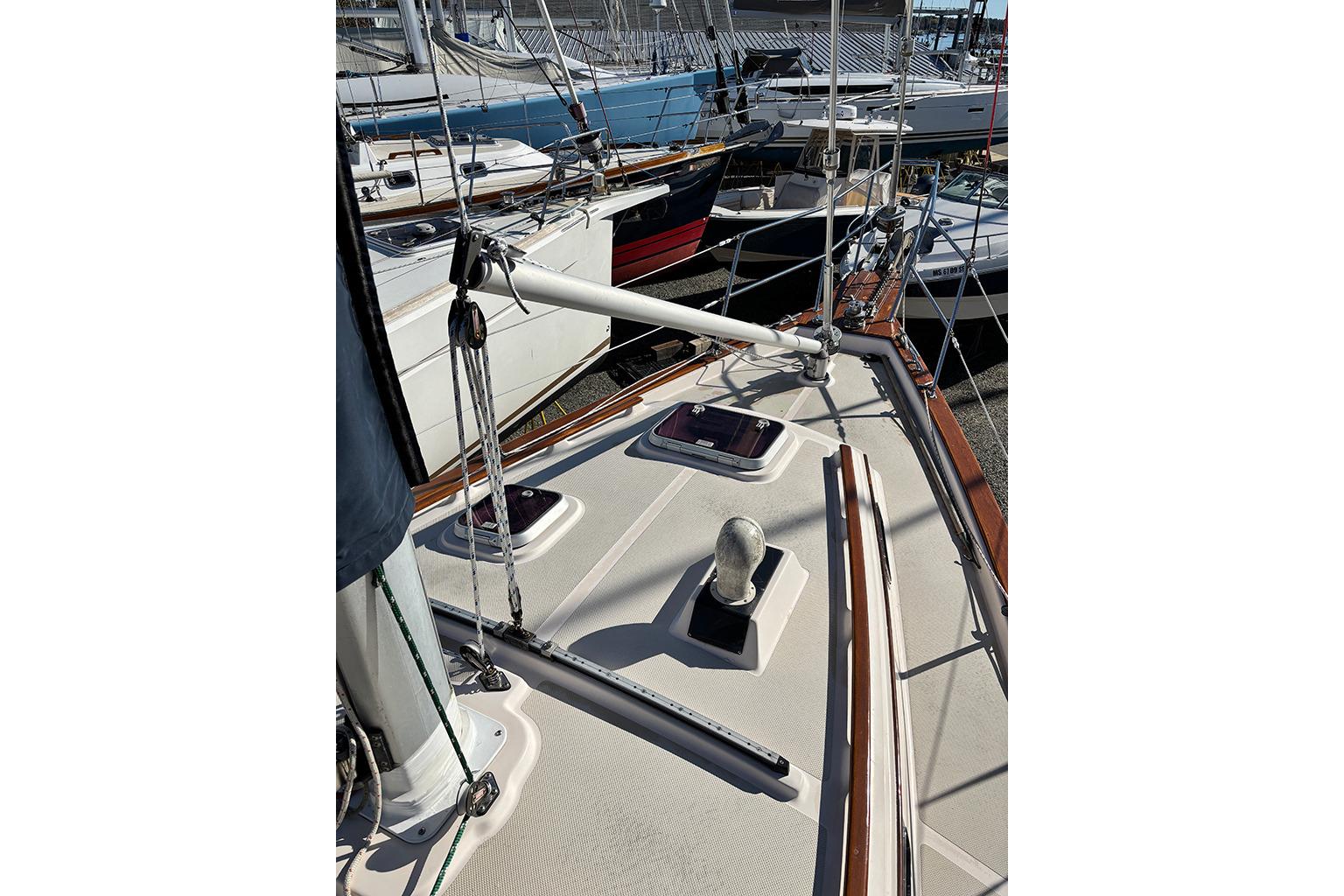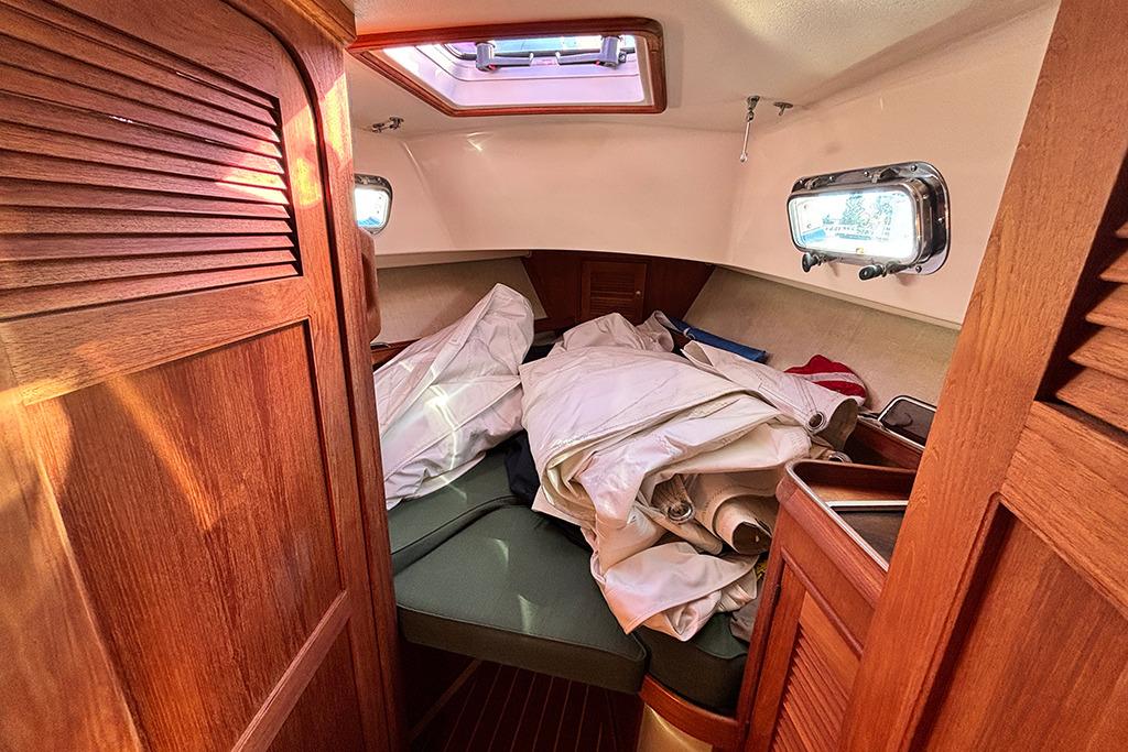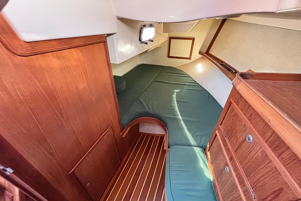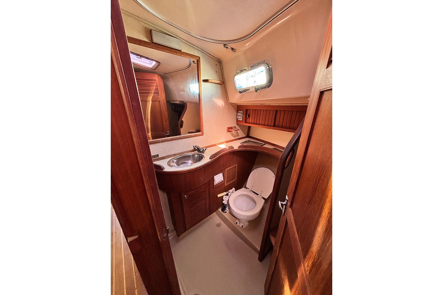 Island Packet 37 Specifications - Standard Equipment Rig, Sails, Hardware - Sails: Main w-double reef, 130% roller furling genoa, roller furling staysail, triple stitched - Mainsail cover, genoa & staysail sun panels in choice of Sunbrella colors - Genoa gear, including tracks, blocks, sheets and furling system - Staysail gear including traveler, blocks, Lewmar Ocean Series 8C sheet winch, Lewmar Ocean Series 8C halyard winch, and furling system - Jib halyard winch on mast, Lewmar Ocean Series 24C 2-speed - Main halyard (on roller bearing masthead sheave) and main sheet, led to cockpit through stoppers to Lewmar Ocean Series 30CST winch - Dual single line "Auto Reefing" system for double set of reef points led to cockpit through stoppers to Lewmar Ocean Series 16CST winch - All halyards internal, color coded running rigging. Convenient coaming storage bins for lines - Boom vang - preventer package - Winch handle - 10" lock-in chrome - Jib sheet winches - two Lewmar Ocean Series 44CST 2-speed - Midboom sheeting for unobstructed cockpit & dodger installations - Main sheet traveler w- 4:1 control system - Wheel steering - console mounted custom Edson rack & pinion direct system with wheel brake, stainless steel wheel. Provision for remote autopilot installation. Custom pedestal with guard, engine control, hinged table. Emergency tiller w- storage brackets - Compass, Ritchie SP-5, custom Island Packet nav grid - Welded stainless steel double bow rail & stern rail, stanchions, stern rail with stainless steel flagstaff holder and stainless steel staff - Double lifelines w- side gates, full-length teak cabin top hand rails - Stern gate w- quick release hook - Swim ladder (stainless steel transom mount) w- teak steps - Two stainless steel anchor rollers w- chocks and hinged deck pipes to forepeak - Four 12" mooring cleats, two 10" spring line cleats, chocks & stainless steel chafe guards - Twin backstays for easy stern boarding & unobstructed helm seating - Topping lift-adjustable - Keel stepped mast. All anodized spars - Sparcraft Ocean Series Interior - Eleven opening ports w- screens - polished stainless steel, safety glass - Five deck hatches - head, forward cabin, salon, aft head, aft cabin, galley - Lewmar (acrylic & aluminum) - Three deck ventilators (dorade type) w- screens - Large forepeak w- louvered access door & overhead deck pipes, light, drain to bilge, center divider w- attachment for rodes - Forward cabin w- privacy doors to salon & head compartment. Large double V-berth w- full-length teak shelves outboard, large stowage lockers under. Generous cedar lined hanging locker w- shelf over. Two opening ports plus overhead hatch. Deck vent, varnished teak & holly sole - Forward head w- stall shower (electric drain pump) w- teak trim, curtain on track, large vanity with polished stainless steel sink, storage cabinets, opening port & an overhead hatch, toothbrush holder w- cup, toilet paper holder, molded fiberglass interior headliner with textured finish, integral recessed lighting - Main salon w- pullout double settee berth to port, single settee berth to starboard, teak cabinets & bookshelves outboard of both settees. Large stowage areas behind & under each settee. Cedar lined hanging locker w- shelf over. Deluxe drop leaf table folds against bulkhead rack (w- bottle stowage) for unobstructed 4' wide varnished teak & holly sole. Large overhead hatch, numerous opening ports, deck vents & overhead hand rails - Navigation station w- large table w- tray storage under, nav light, generous nav - electronics cabinet w- master AC-DC electrical panels plus room for variety of owner installed equipment - Chart stowage drawer beneath settee - Aft cabin w- privacy door to main cabin. Large double berth w- full-length teak shelf outboard, stowage lockers under, dressing seat. Generous cedar lined hanging locker w- shelf over, bureau w- shelf over, two opening ports plus overhead hatch, varnished teak & holly sole - Courtesy - night lights with switch by companionway - All cushions 5" thick foam & upholstered in premium designer fabric - Removable teak companionway ladder w- engine access from all sides - Storage rack for companionway drop boards under nav table - Molded slip resistant cabin sole adjacent to companionway. galley & nav station, w- draining grate in front of ladder. (Teak grate lifts out for dust pan) - Teak bulkheads, cabinetry, trim - select grain w- hand-rubbed oil finish - Teak louvered cabin & locker doors - deluxe trim; push button safety latches on locker doors - Molded fiberglass interior headliner w- textured finish, teak trim - Teak & holly sole in main salon, forward & aft cabins - varnish finish Galley - Large wrap-around design w- Formica surfaces, teak sea rails on all edges, flip up counter extension - Icebox - top loading, superior injected froth type urethane insulation throughout, lift-out shelf, large 12 cu. ft. volume, electric drain pump, inside light - Gimbaled three-burner LPG stove w- oven - stainless steel deluxe safety type, lift off cover. Stainless steel guardrail w- harness hooks. Pot and pan locker under - Double stainless steel sink with deluxe polished finish, hot & cold pressure water tap, manual pump, retractable spray unit - Hideaway trash bin, teak paper towel holder, towel rack & soap rack - Deluxe teak dish rack & cutlery drawers - Large storage areas above & below counter. Storage drawer, microwave alcove - Cockpit instrument access cabinet Exterior - Construction - 100% hand-laid fiberglass construction throughout with ISO - NPG type gelcoat for maximum durability, plus Island Packet's exclusive PolyClad bottom gelcoat system with 10-year limited warranty, gelcoat applied using premium high-volume, low-pressure application equipment for exceptional finish quality, reduced airborne emissions - All structural laminates and reinforcements designed to ABS standards - Hull molded in one piece utilizing a proprietary pressure fed application system 